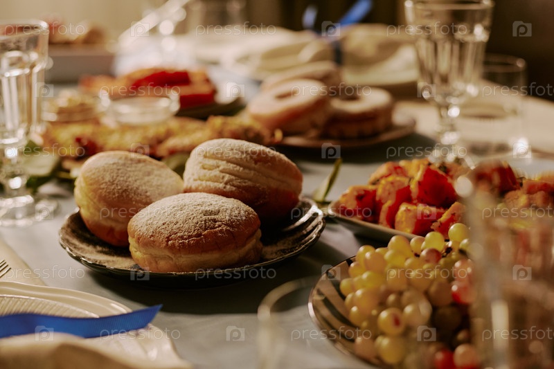 Свежевыпеченные пончики на тарелке