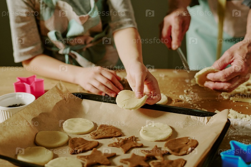 Выпечка печенья с ребенком, делающим звезду и круглые формы
