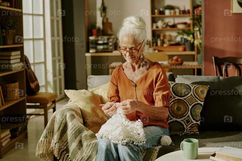 Вязание в уютной гостиной с естественным светом