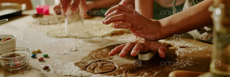 Выпечка печенья с помощью роликового булава и резака для печенье