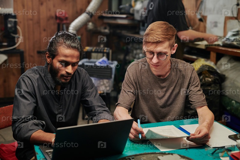 Два межкультурных инженера с ноутбуком