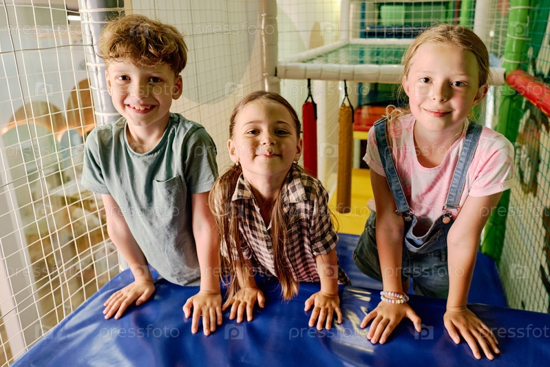 Очаровательные дружелюбные дети на объектах
