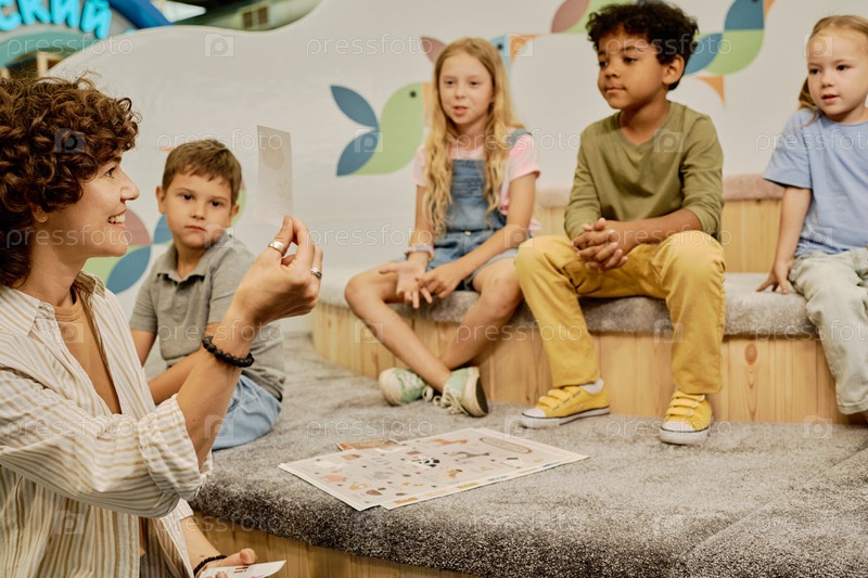 Учительница общается с маленькими детьми