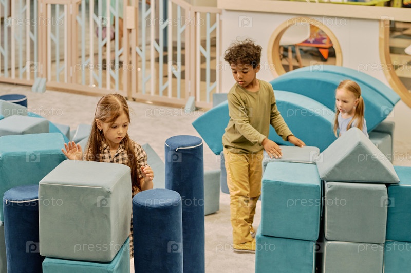 Группа детей, строящих кубическую башню