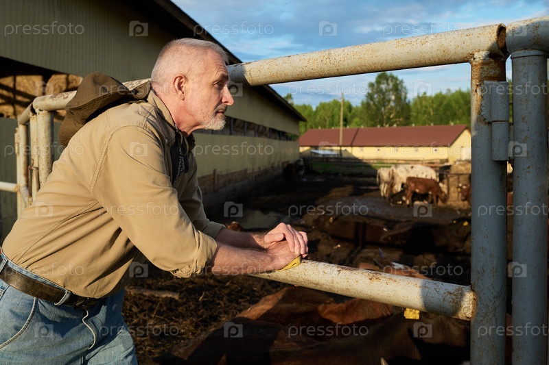 Владелец фермы, стоящей у ограждения
