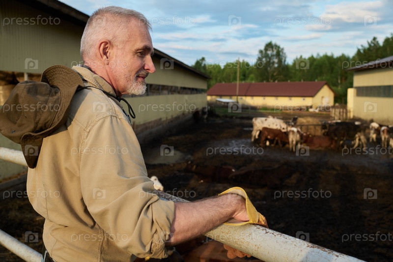 Бородатый зрелый владелец современной фермы