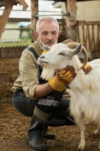 Гладить козу и смотреть на белого животного