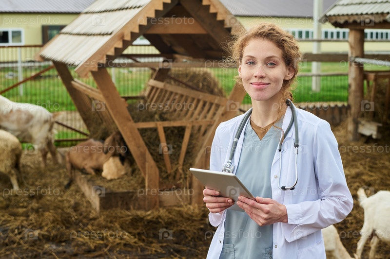 Молодой улыбающийся ветеринар с планшетом