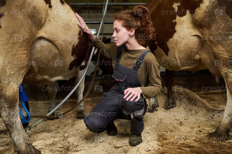 Прикосновение к молочной корове во время доения