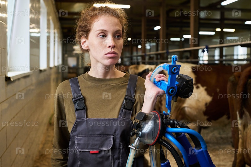 Молодой фермер несет доярку