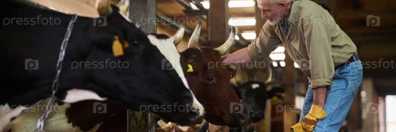 Фермер стоит перед молочными коровами