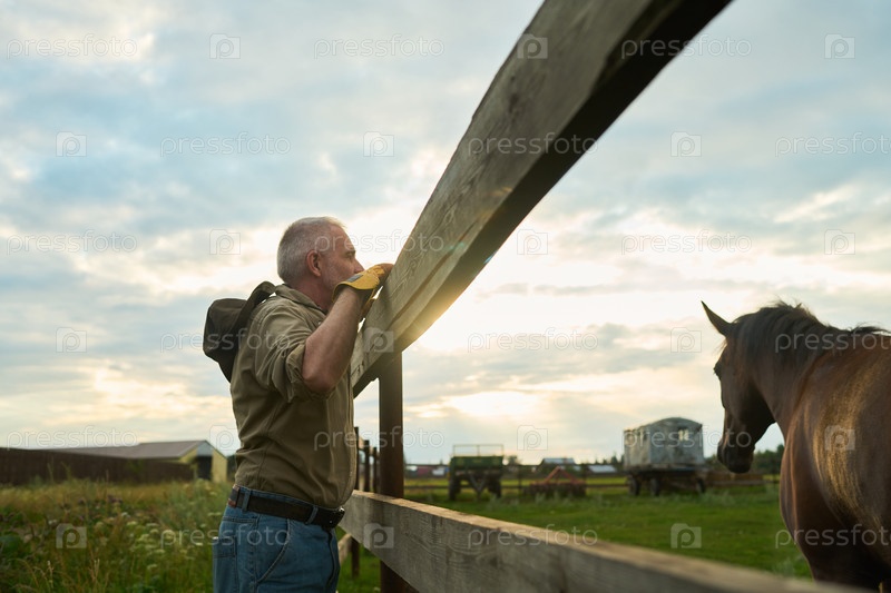 Фермер по скотоводству с чистокровной лошадью