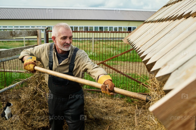 Положить сено вилкой в кормушку
