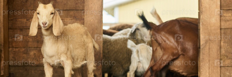 Маленькая коза и стадо домашних животных