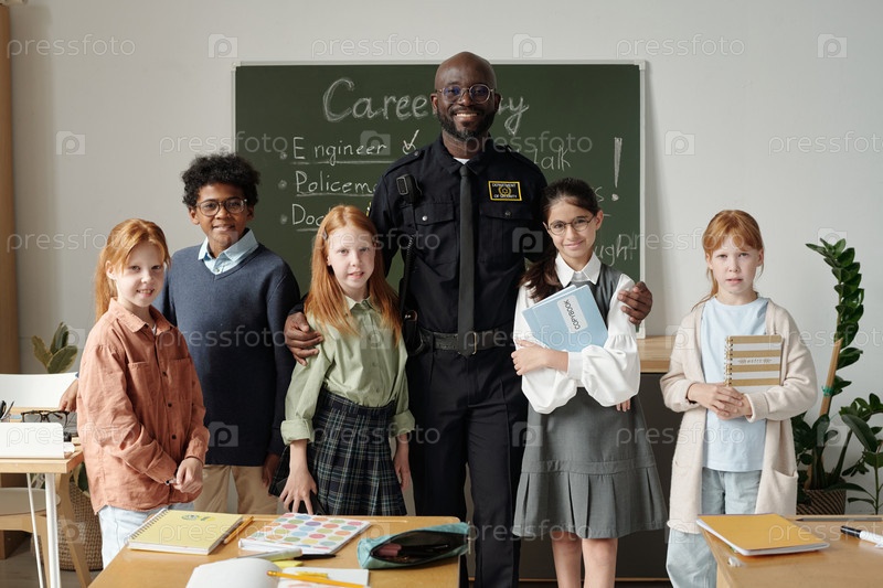 Полицейский с группой школьников