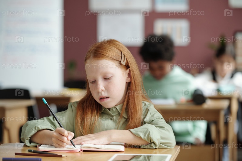 Умная и усердная девушка, которая делает заметки