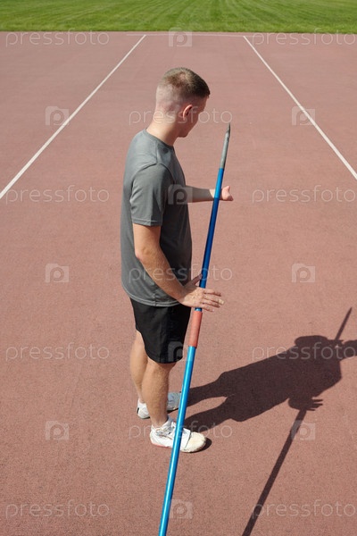 Тренировка с копьем на атлетическом треке в солнечный день