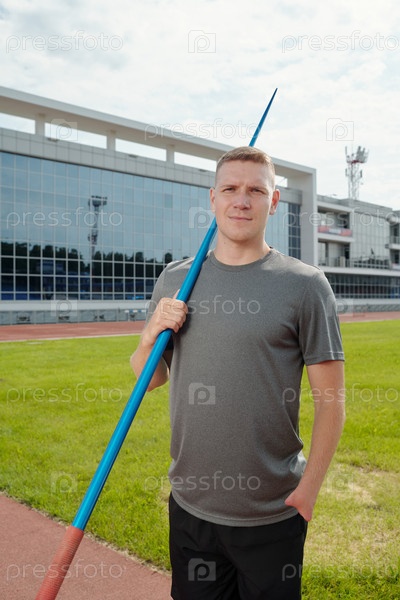 Портрет спортсмена, держащего копье на треке
