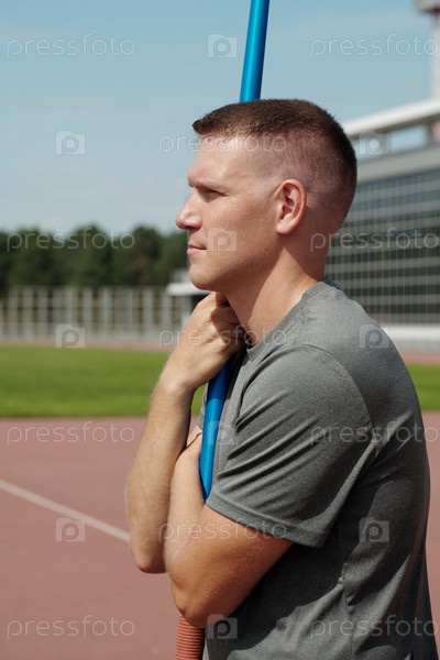 Спортсмен, держащий полюсовый прыжок на наружном треке