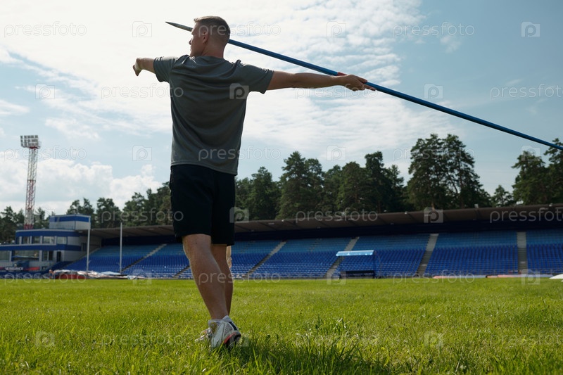 Практика бросания копья на открытом стадионе с Blue Sky