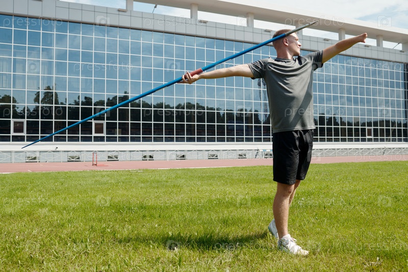 Бросание копья на спортивном поле в солнечную погоду