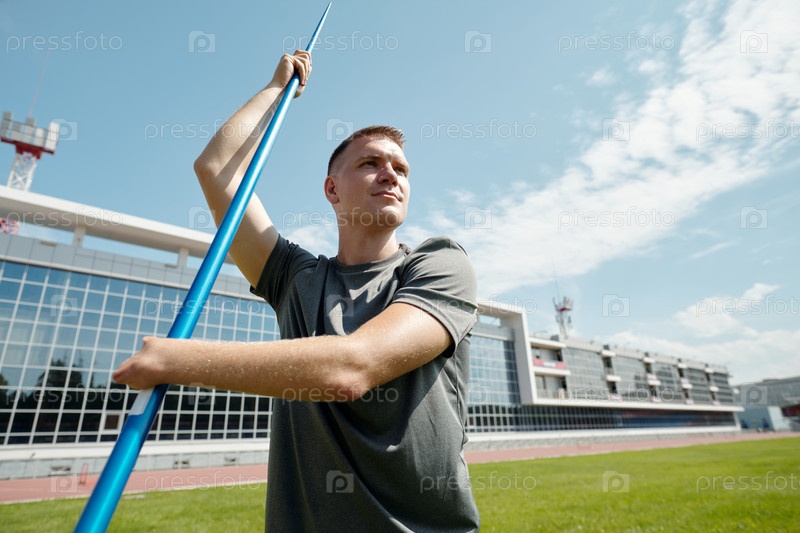 Атлет, бросающий копьё на поле легкой атлетики