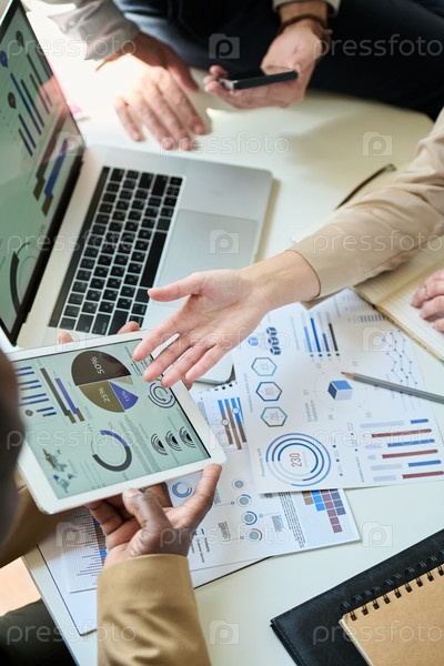 Показывая на финансовый документ на экране