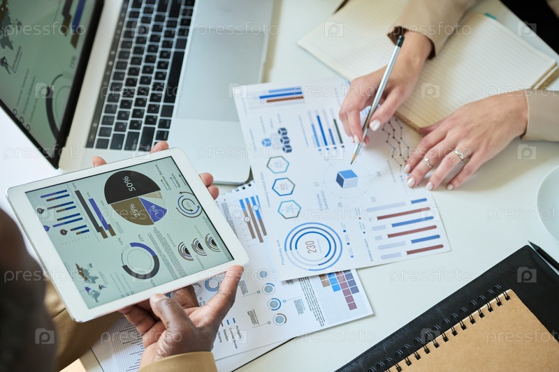 Показывая на бумажную работу с графическими данными