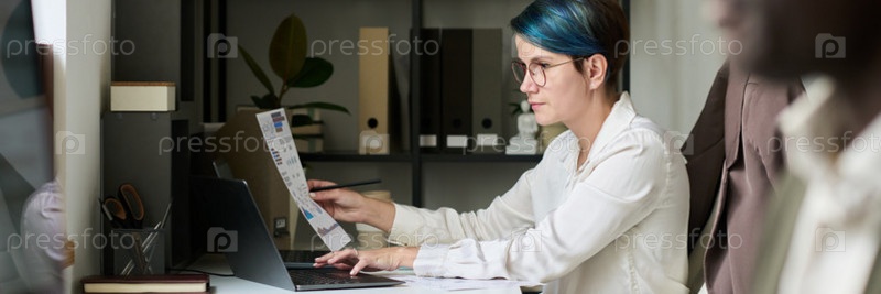 Молодой брокер печатает на клавиатуре ноутбука