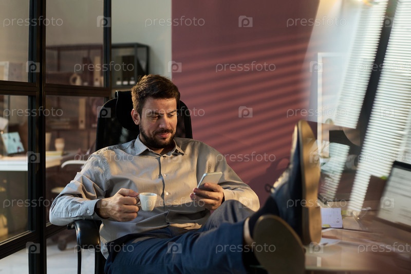 СМС-сообщения в смартфоне во время перерыва на кофе