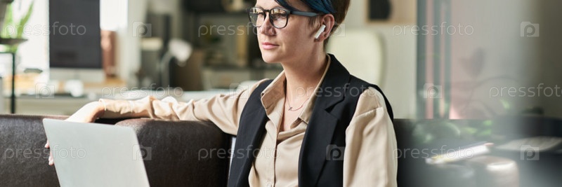 Молодая серьезная бизнесвуменская сеть