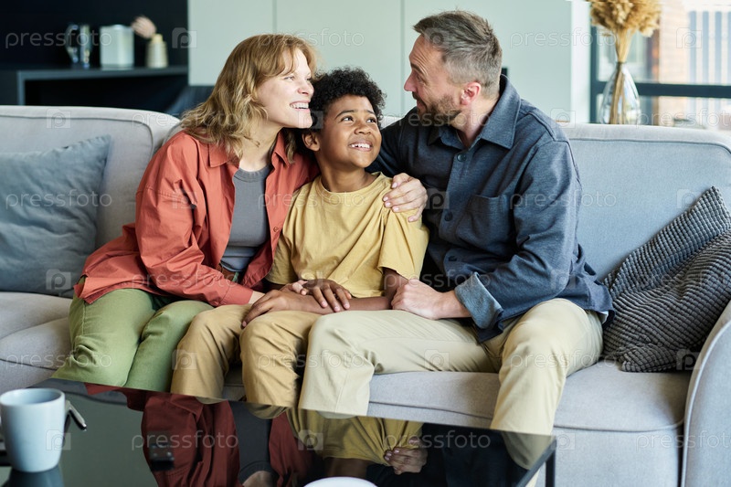 Принятие семейного момента на диване с улыбкой