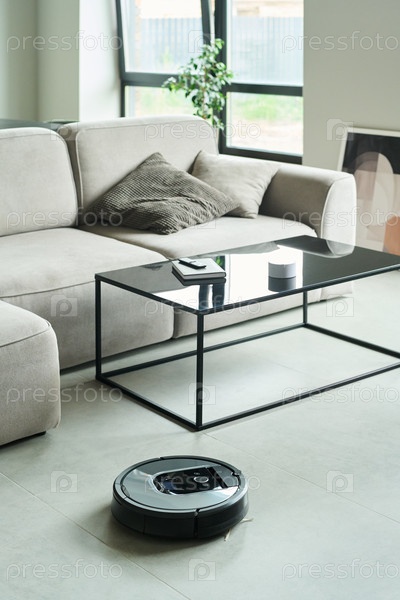 Роботизированный пылесос, ориентирующийся в современной гостиной