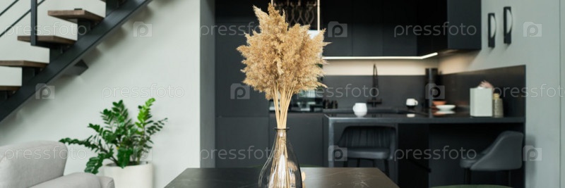 Современный интерьер с высокой травой в стеклянной вазе