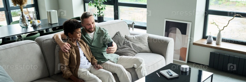 Момент сближения между отцом и сыном, сидящим на диване