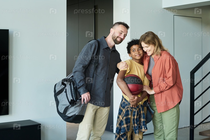 Возвращение домой и приветствие семьи с улыбкой