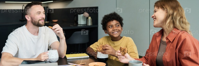 Наслаждаться завтраком вместе на современной кухне