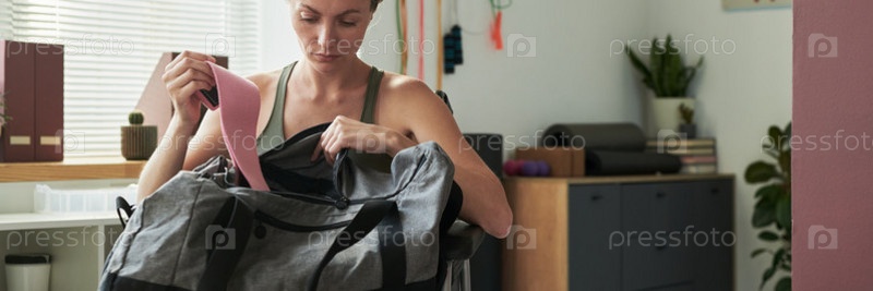 Подготовка спортивной сумки в фитнес-студии с помощью гигиенического оборудования