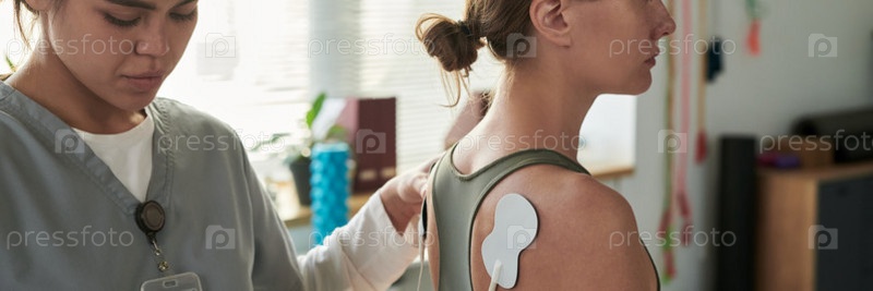 Медицинский профессионал, применяющий электродную подкладку к пациенту