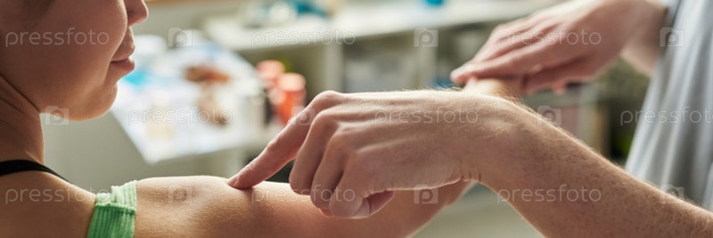 Близкий план человека, получающего лечение руки в медицинской обстановке