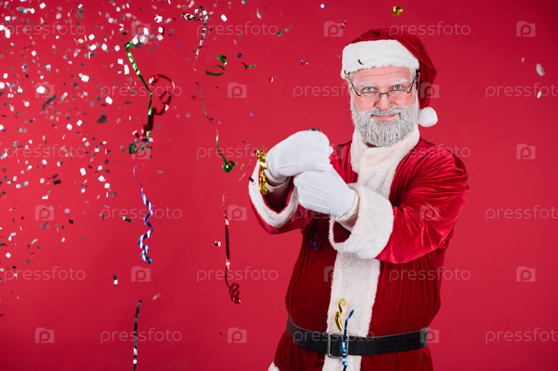Пожилой мужчина празднует Рождество в костюме Санты