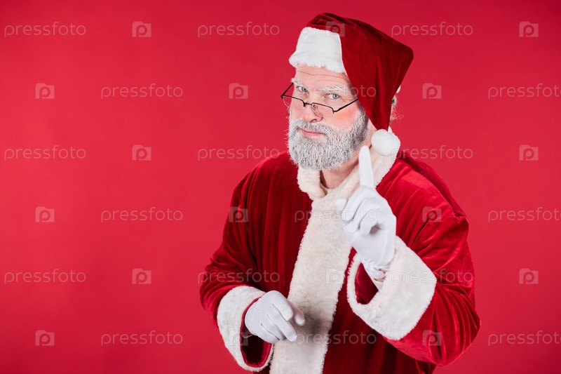 Санта Клаус держит свой палец вверх на красном фоне