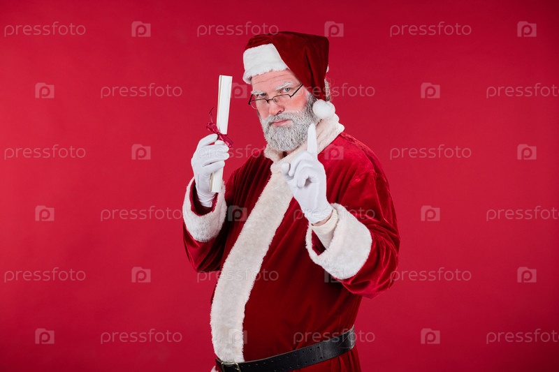 Портрет Санты-Клауса, держащего свиток на красном фоне