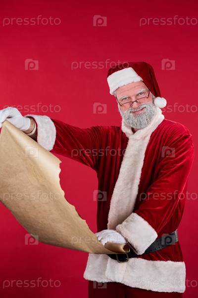 Санта-Клаус читает большой рождественский список
