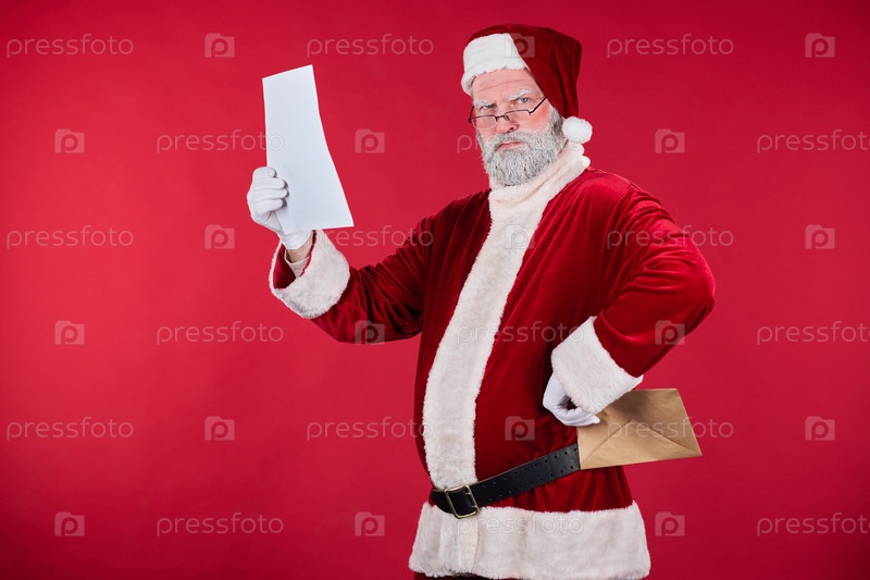 Портрет Санты-Клауса, держащего бумагу и конверт