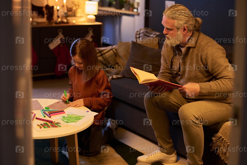Чтение книги с ребенком в уютной домашней обстановке