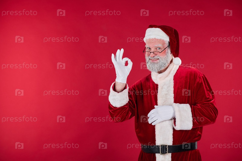 Улыбающийся Санта Клаус показывает правильный жест