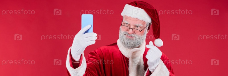 Санта Клаус делает селфи со смартфоном