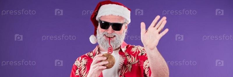 Машущий Санта-Клаусом, держащим тропический напиток Улыбающийся