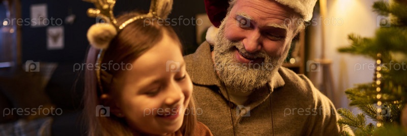 Празднование Рождества с бабушкой и дедушкой и ребенком, которые наслаждаются